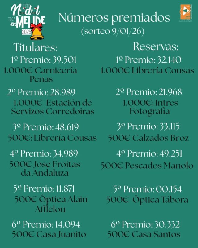 Números premiados no sorteo «Este Nadal toca en Melide»